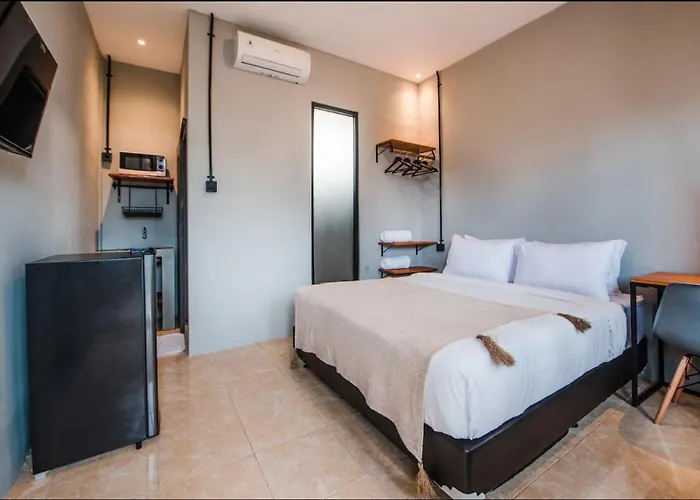 The batu Bolong Echo Beach is within a 10-minute drive of the Canggu hotel and the ancient hindu Tanah Lot Shrine is around 15 minutes away by car. Guests can visit places of worship such as the revered Petitenget Temple, situated 3.7 miles from the Canggu Apartments: Studio+Kitchen / Batu Bolong-A4. The nearby cultural experience includes Nyaman Gallery, which is approximately 20 minutes away by car. For those traveling from afar, Ngurah Rai International airport is 24 minutes' drive away.
